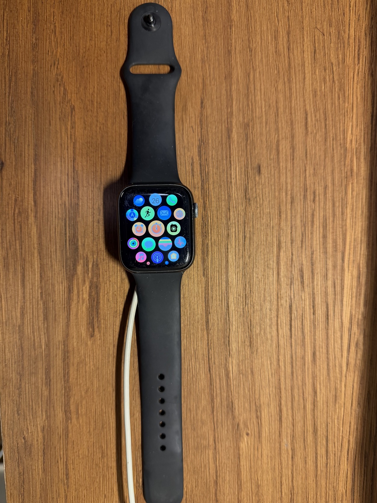 Modell váltás miatt vált eladóvá a 6 éve használt 44mm-es órám. Korának megfelelő állapotban van, a számlapja enyhén karcos, a tokja hibátlan. Minden funkció tökéletesen működik rajta. Aksi 70%-os. Teljes gyári csomagolás, szíj, töltő, adapter is megvan hozzá.