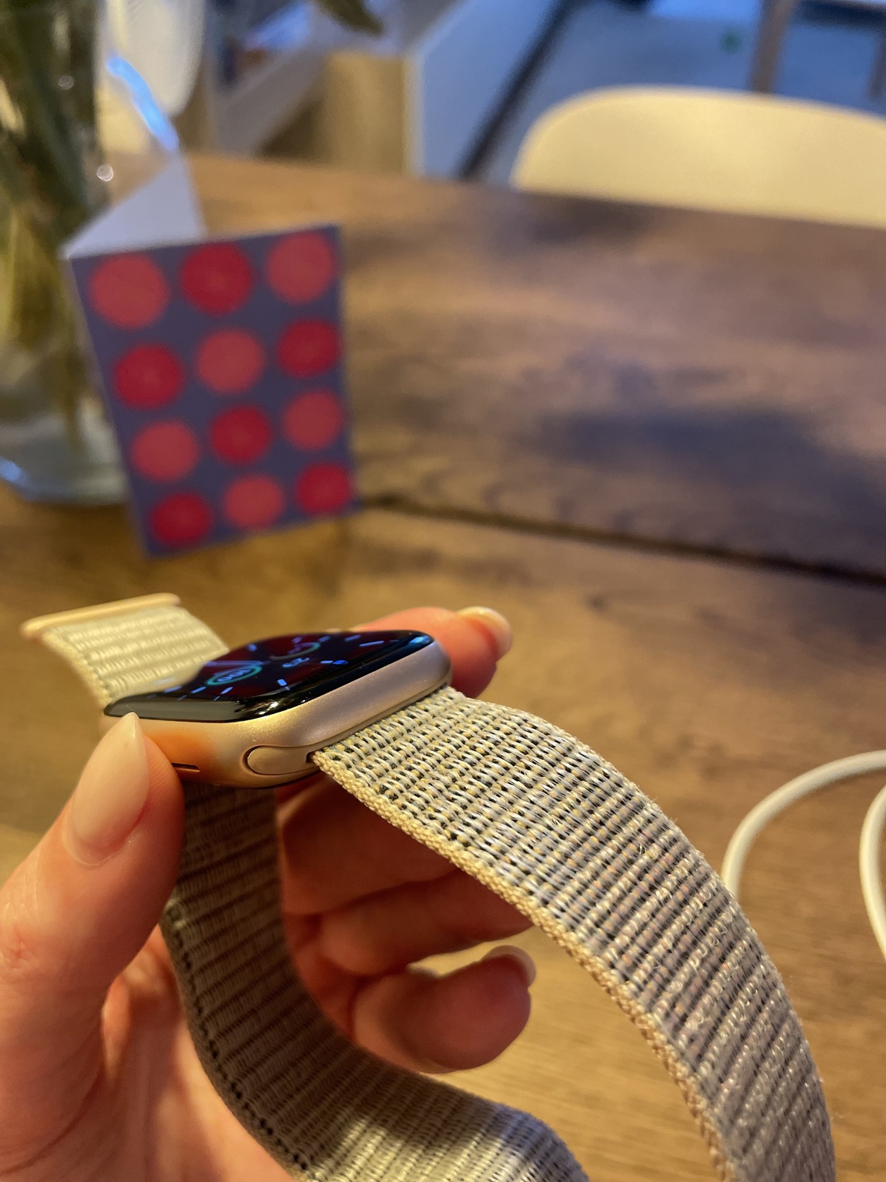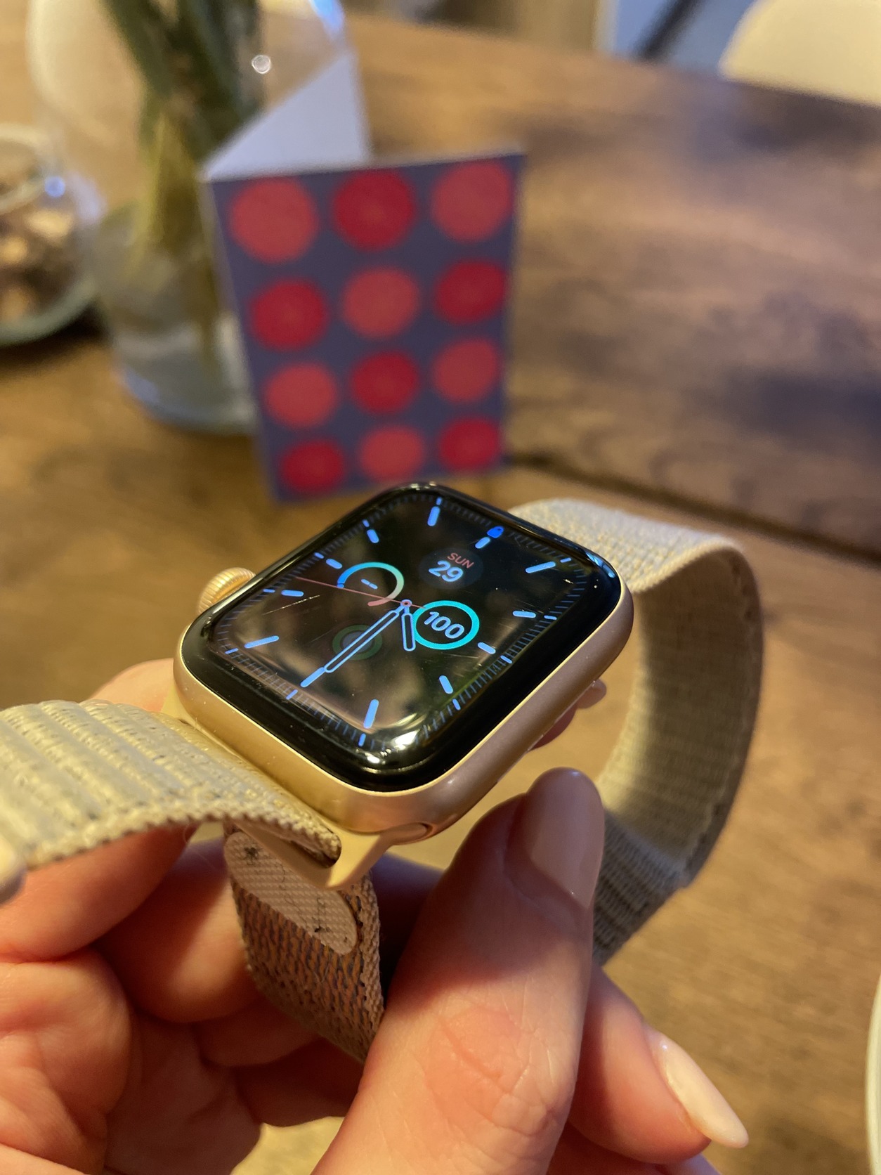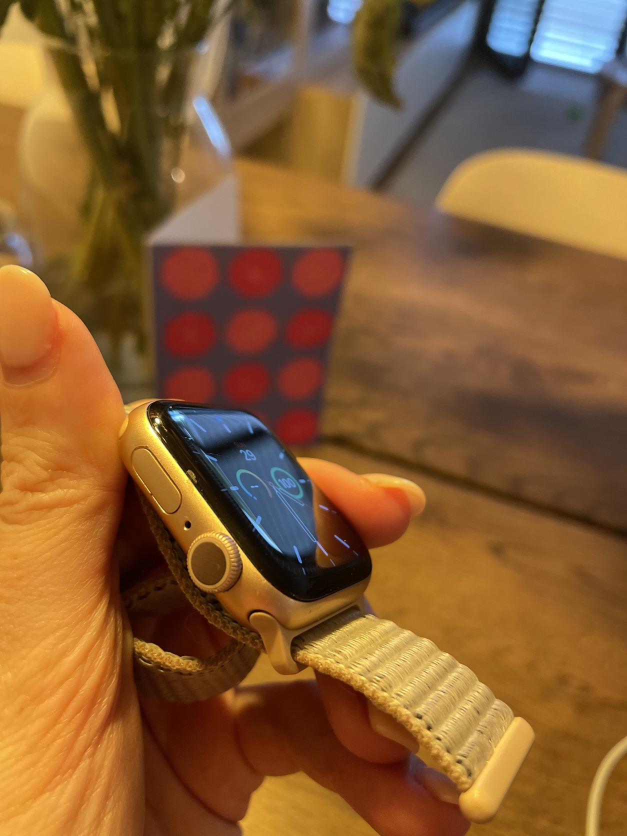 Elado hasznalt Apple Watch Series 6 40mm-es meretben, gold szinben, akkumulator 75% maximum kapacitasu, gyari dobozaval es toltokabelevel, gyari uj allapotu szijaval. Ket extra szijat is adok hozza. Mindennapi hasznalatbol fakado feluleti, esztetikai karcolasok vannak a kijlezojen.