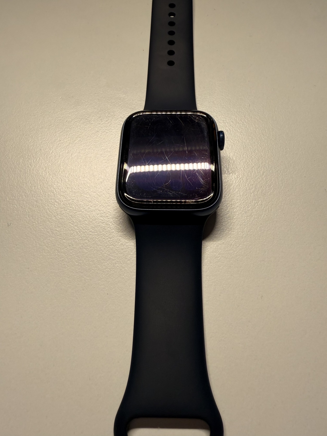 Eladó egy Apple Watch Series 6, erősen használt állapotban. Az órán láthatóak a használatból eredő sérülések, ezek a képeken is jól látszanak.