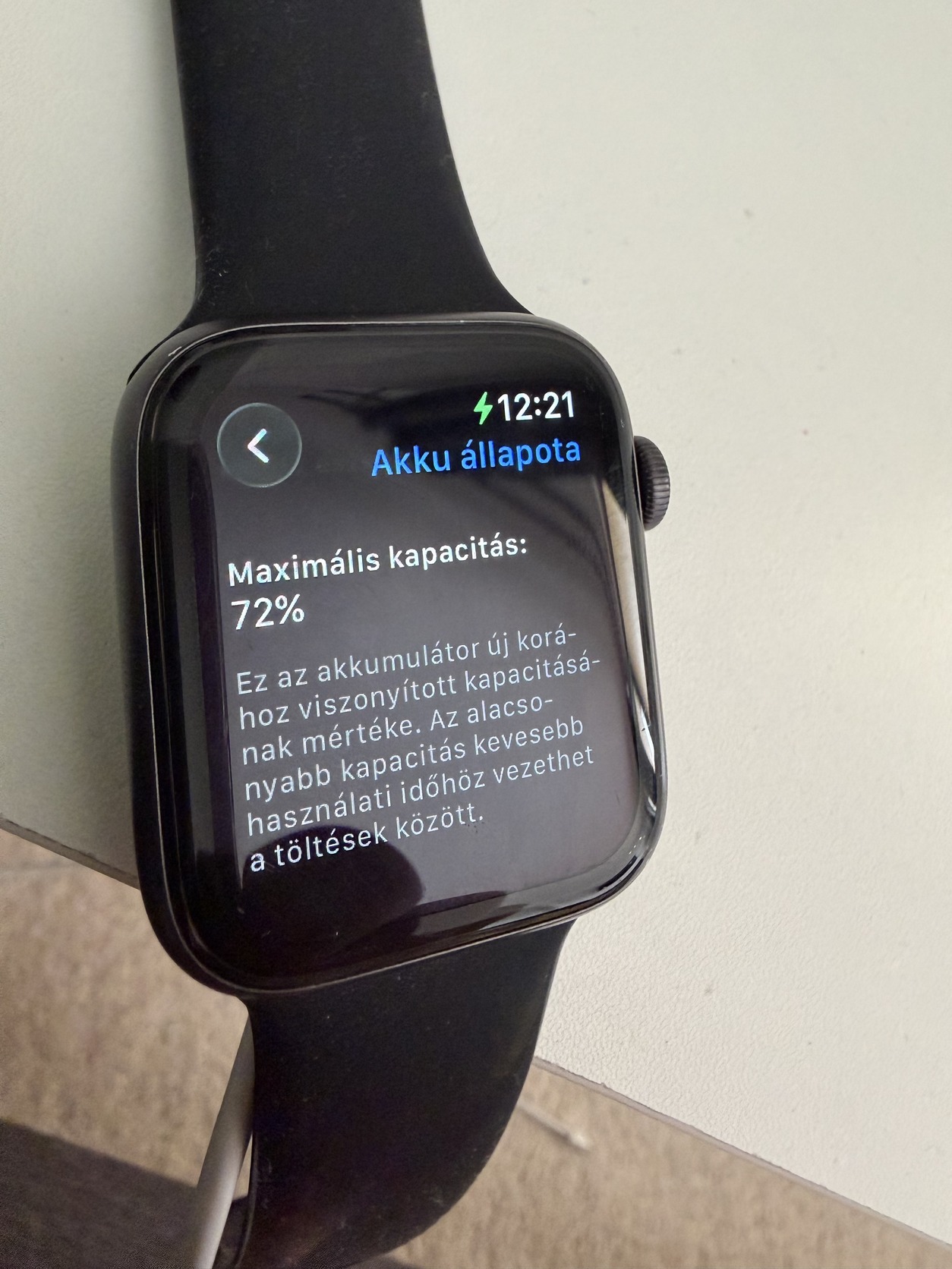 Eladó a képen látható Apple Watch Series 6 44mm GPS + LTE (eSIM képes) okos óra apróbb kijelző karcokkal, 72%-os akkumulátorral iOS26.3 rendszerrel. Töltő kábel jár hozzá. (adapter nélkül)