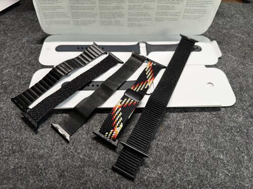 Dobozában minden gyári tartozékával, gyári Midnight Sport Band-el valamint extraként 5 utángyártott szíjjal.