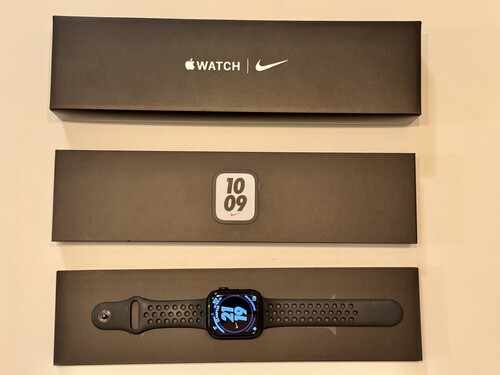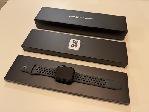 Apple Watch Series 7 45mm Midnight Aluminium minden gyári tartozékával, dobozával.