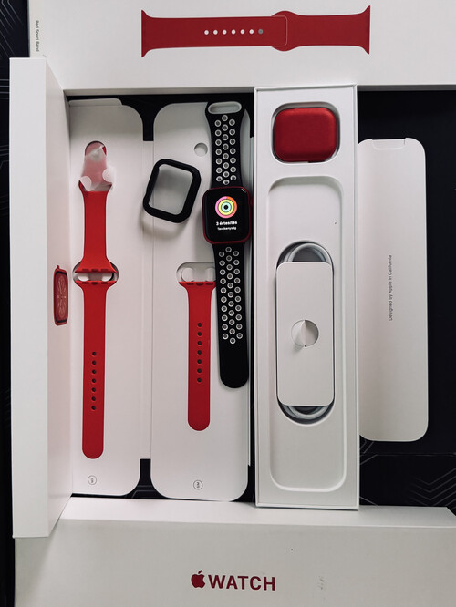 Eladó a címben említett Apple Watch Series 8 41mm, Product Red színű készülék.