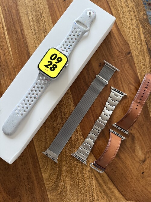 Eladó egy karc- és sérülésmentes 45mm-es Apple Watch Series 8 Cellular ezüst színben. Akkumulátor kapacitása 81%, rozsdamentes acél és Nike sportszíj jár hozzá minden tartozékával együtt.