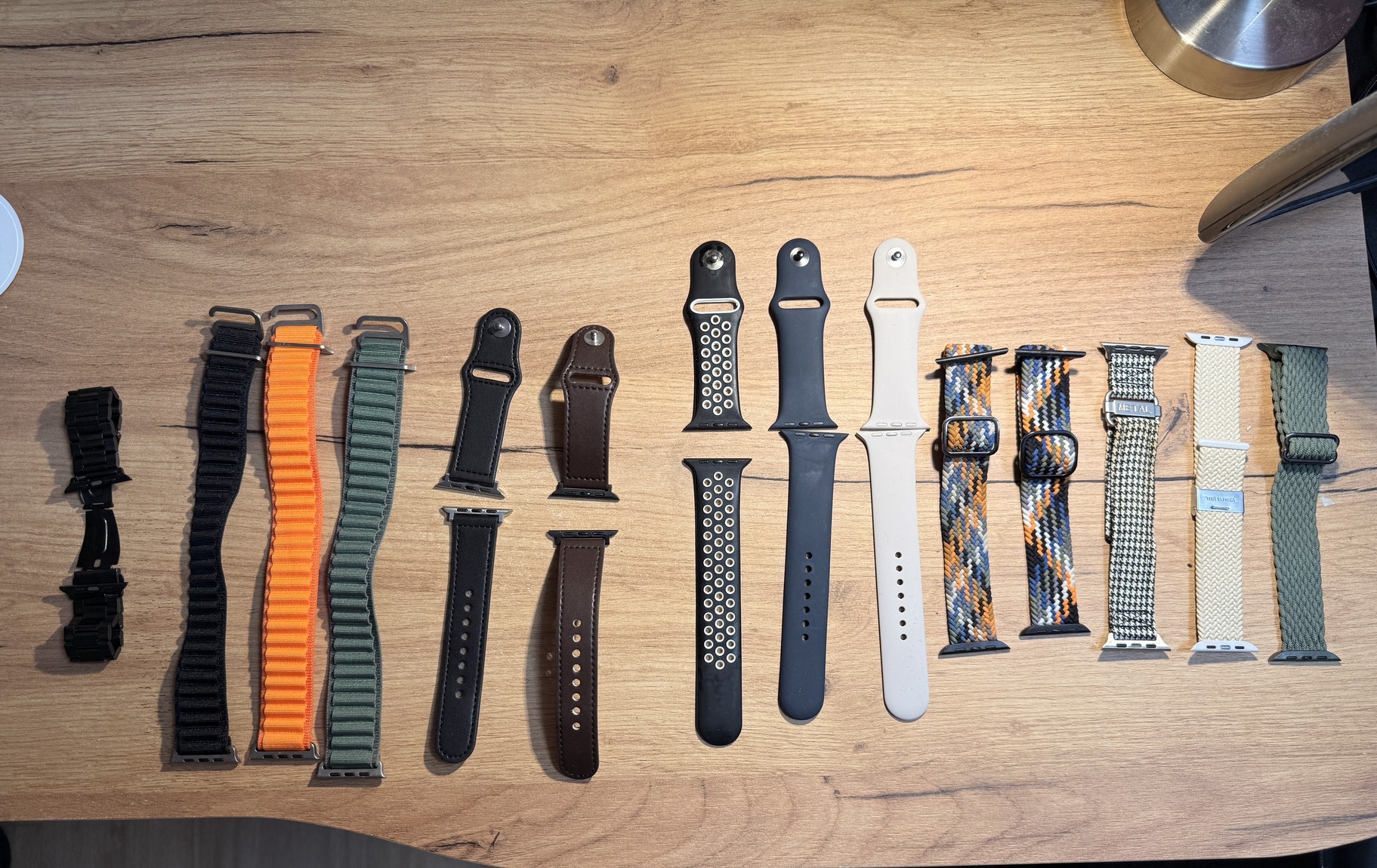 A gyári szíj mellett összesen 13 különböző típusú szíj jár hozzá — köztük szilikon, szövet és fém kivitelűek is.