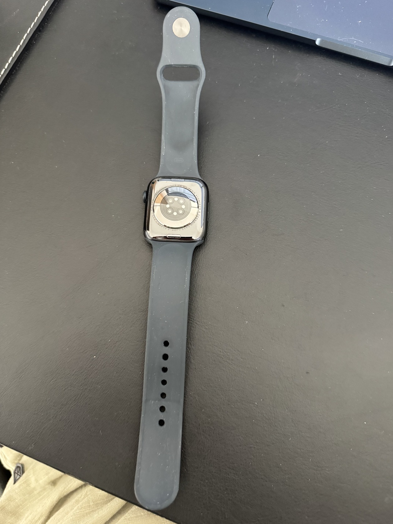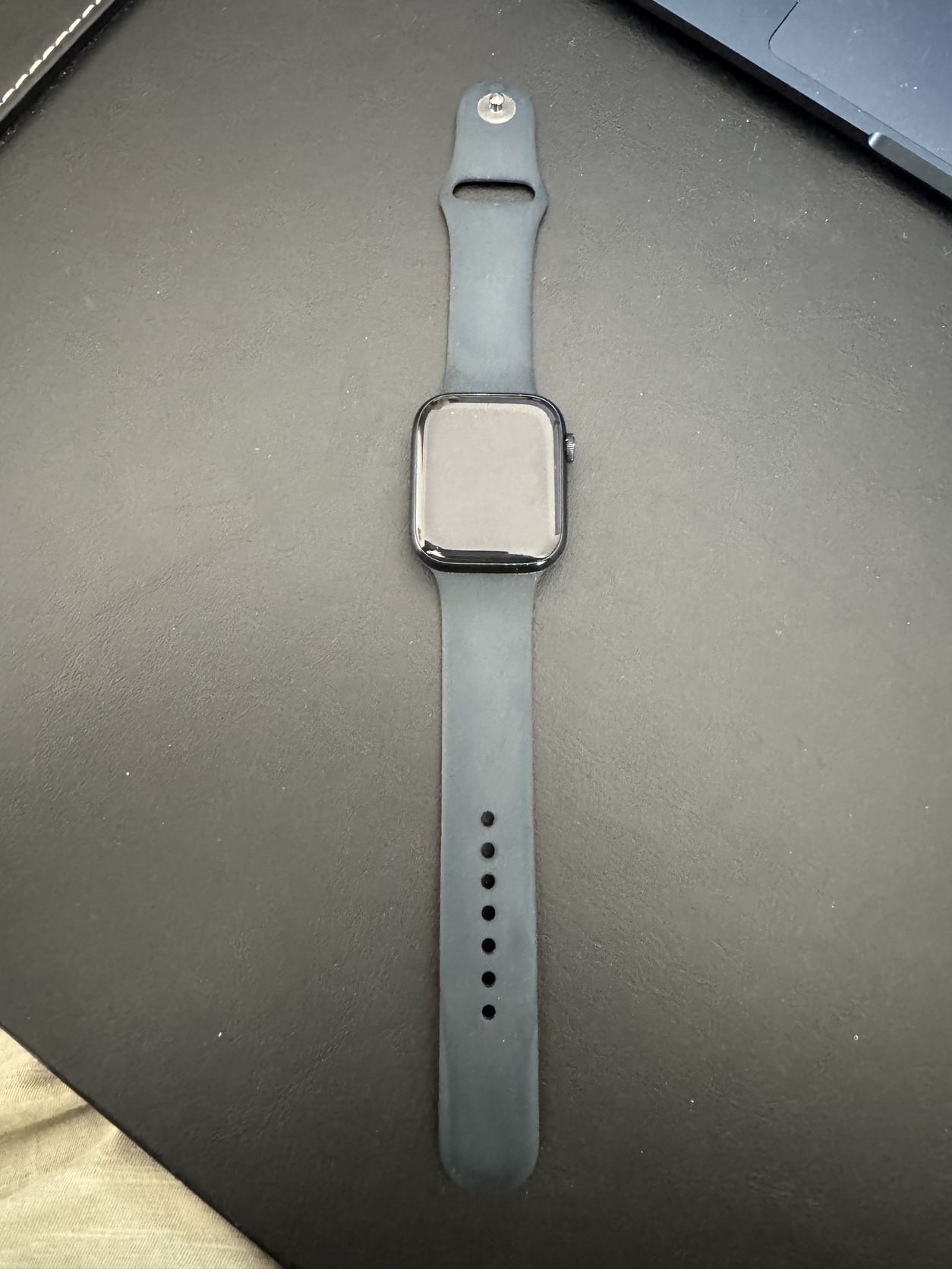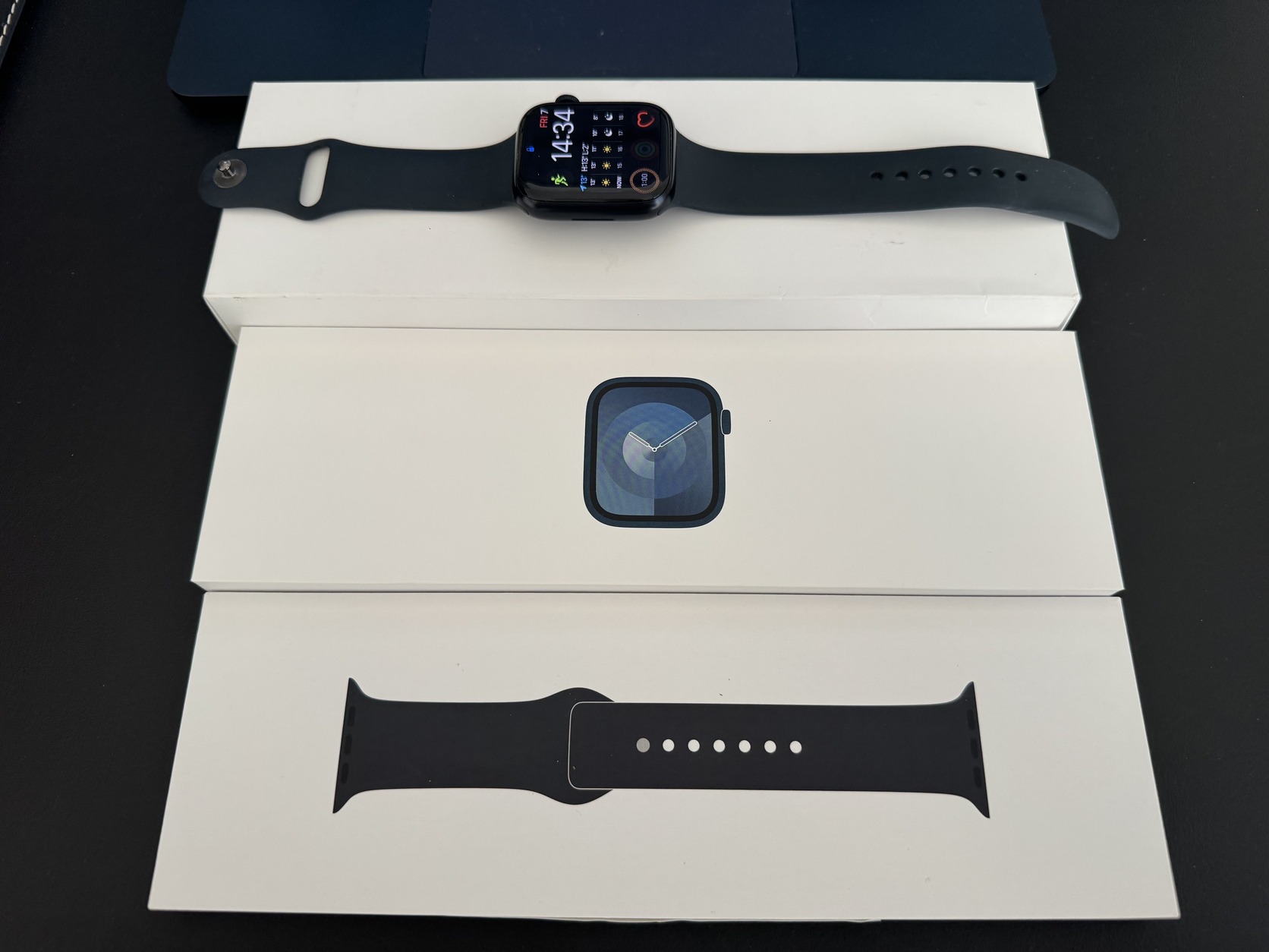 Eladó Apple Watch Series 9 GPS, 45mm, Éjfekete alumíniumtok, éjfekete sportszíj - M/L okosórám. 2023 október 20.-ai vásárlás. Karcmentes kijelző, hibátlan működés, akkumulátor egészség: 87%