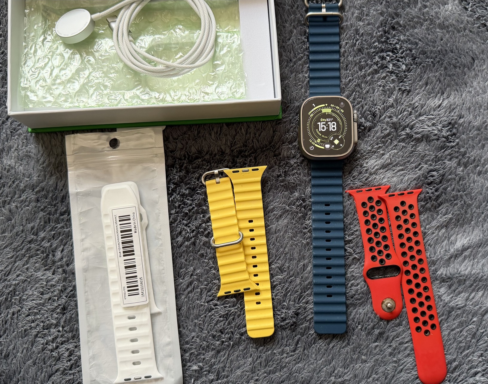Tartozék: Gyári szíj és töltő + ajándék 3 db szíj ami a képeken láthatók