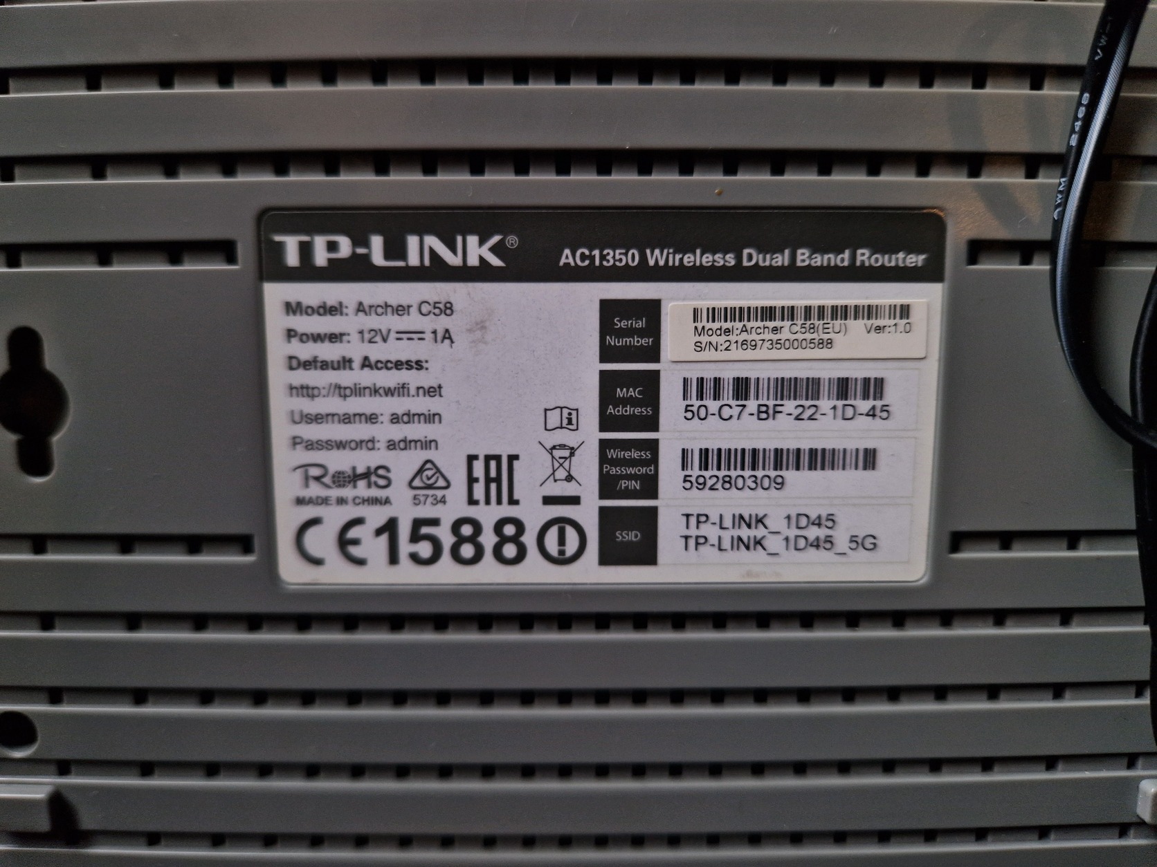 Archer C58 AC1350 TP-LINK router - teljesen működőképes - adapterével és antennáival