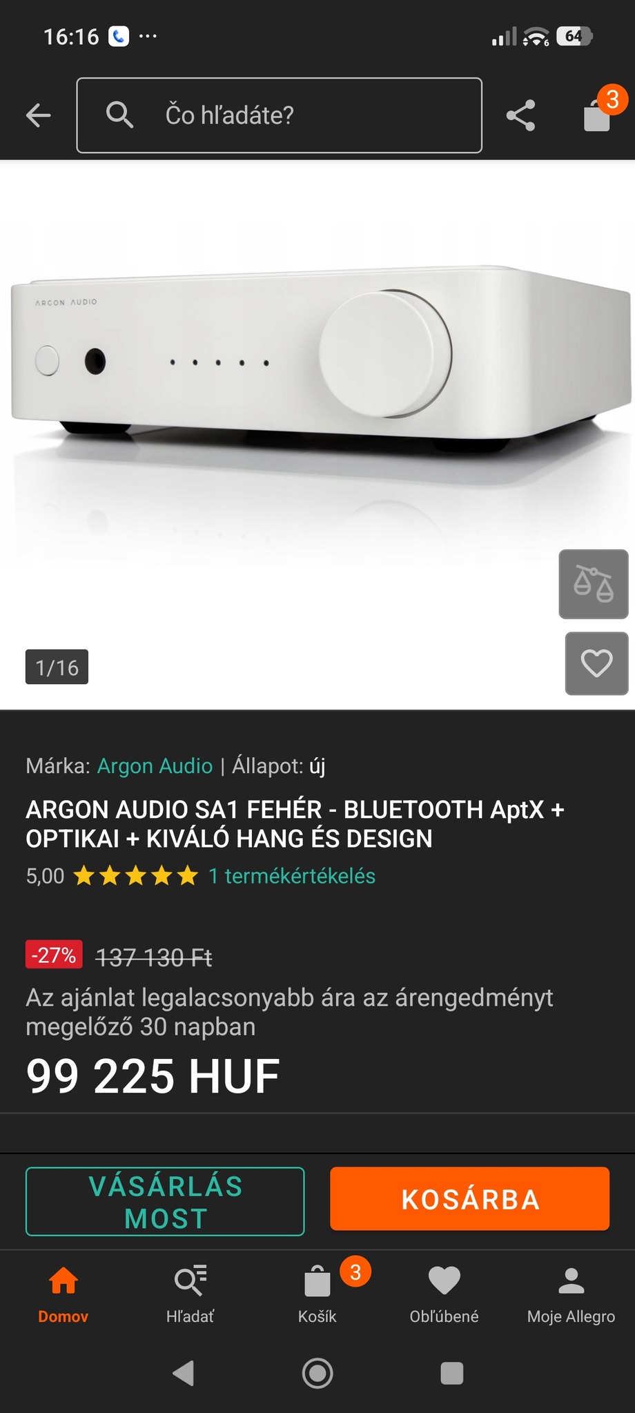 Eladó szinte új állapotú argon audio sa1 digitális erősítő, dobozaval.
