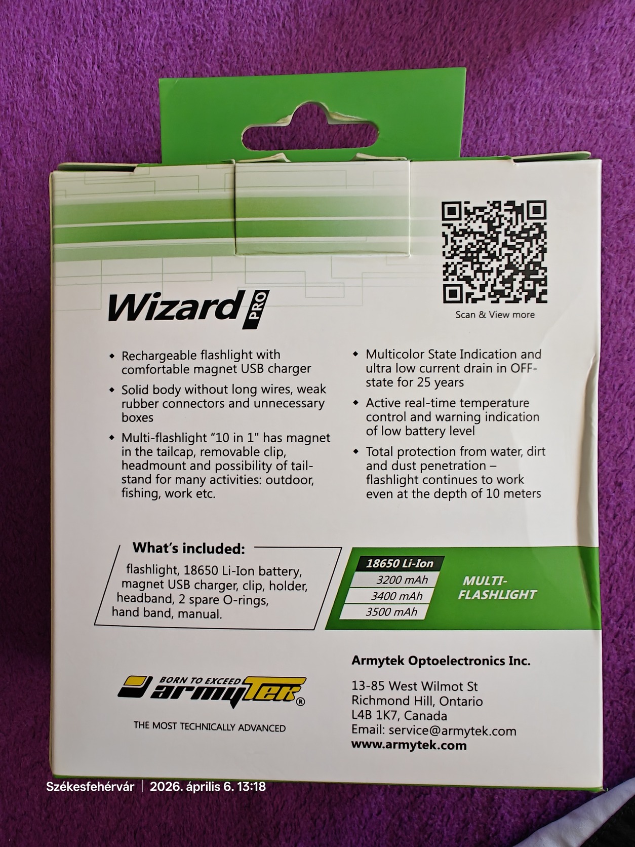 Dobozában, minden gyári tartozékával (fejpánt, 3200mAh akksi, töltő stb).
