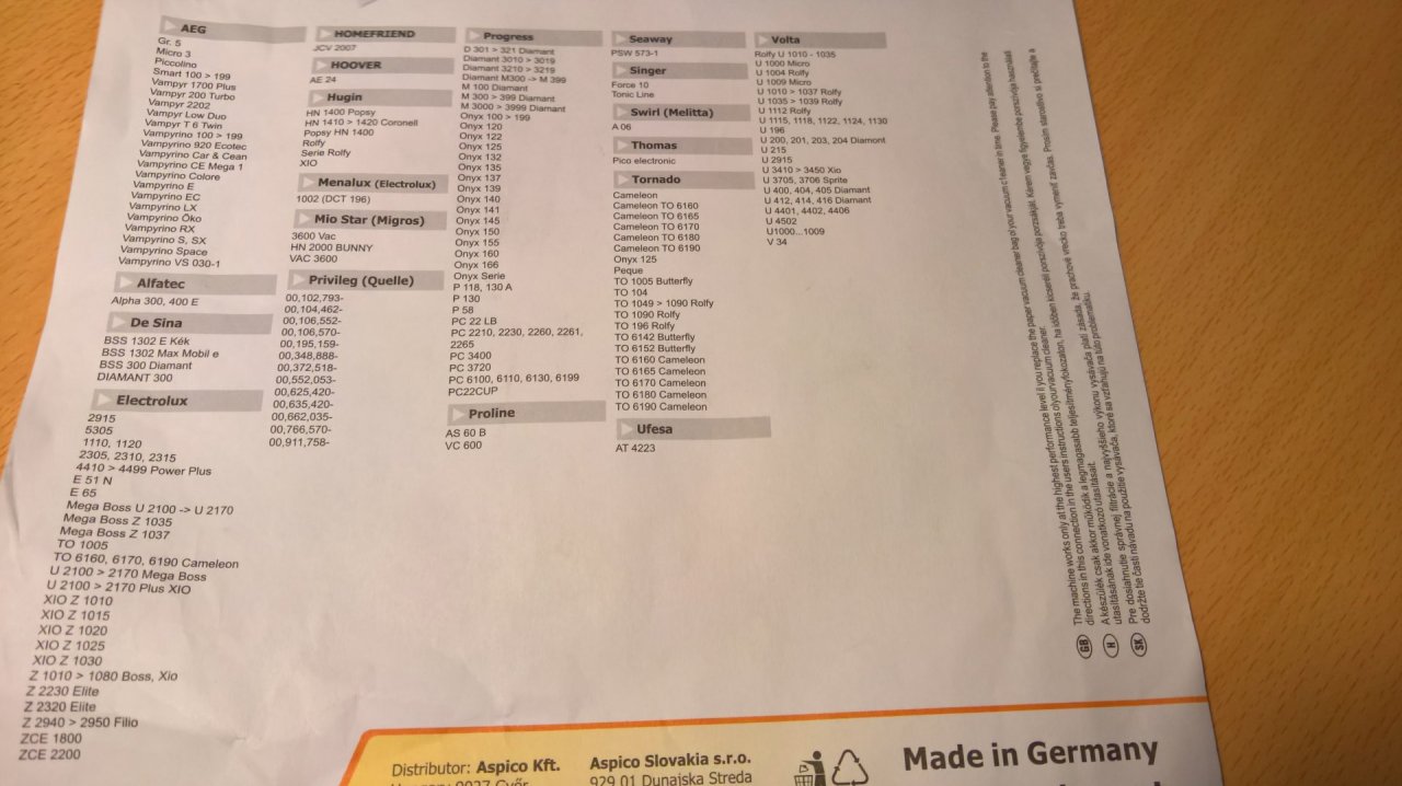 Nagyon sok típusú porszívóhoz jó adott porzsák, lásd azon mellékelt képet, amely a felsorolást tartalmazza, illetve a termékinfós linken szereplő listát.