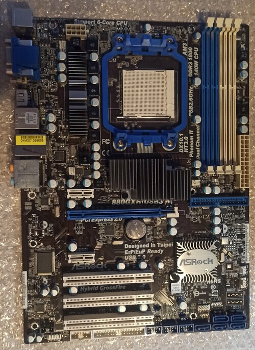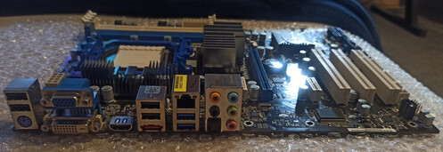 Eladó egy használt Asrock 880GXH/USB3 alaplap és hátlapja.