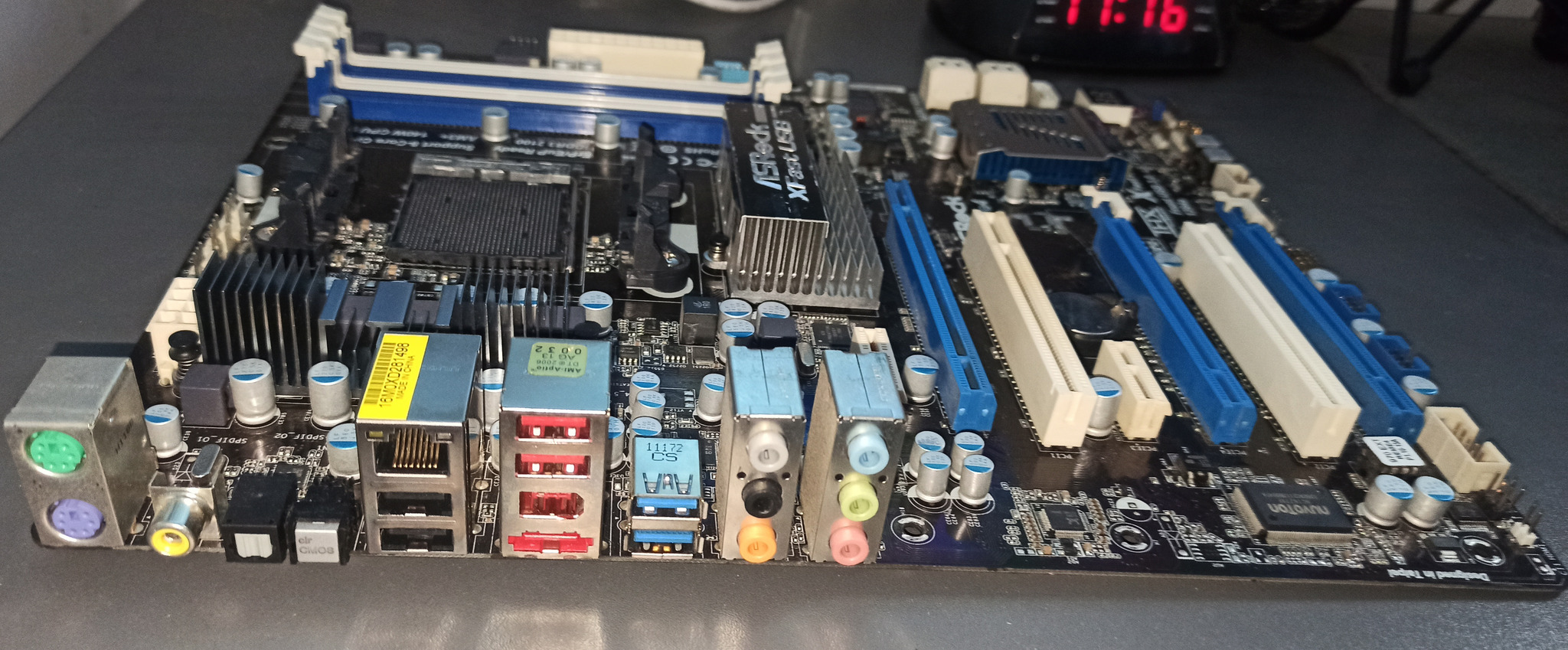 A legfelső PCI-Express foglalat végéről a kis kallantyú hiányzik, de a müködését nem befolyásolja.