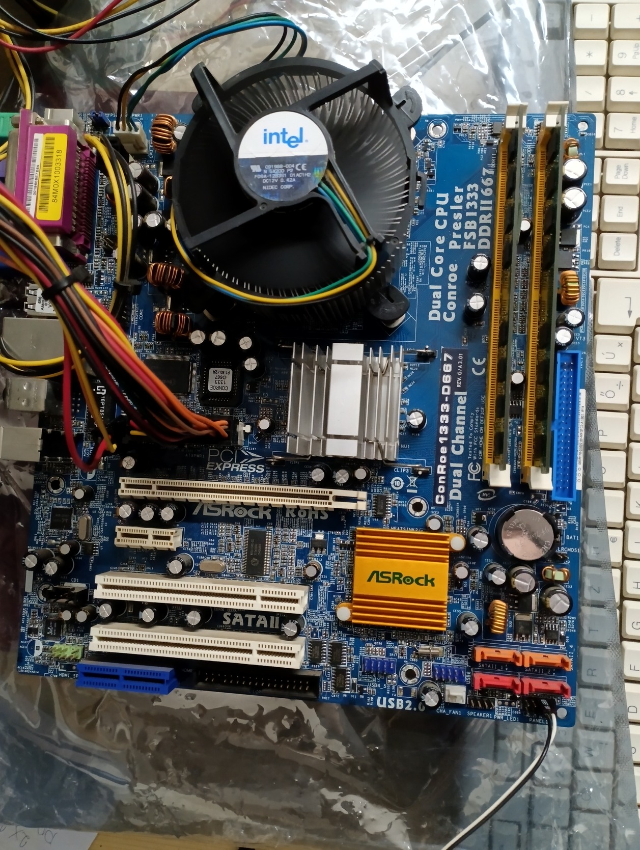 Eladó egy Asrock ConRoe 1333-D667 alaplap. A cpu egy Intel Celeron D 3.06Ghz hűtővel. A ram DDR2 800 4GB (2x2GB).