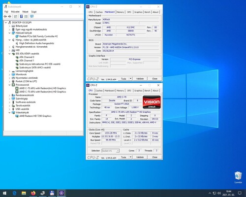 integrált AMD C 70 processzor 1,0 (turbó: 1,33)GHz, 2 mag + Radeon HD 7290 VGA, alacsony fogyasztás (9W)