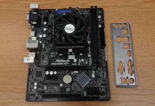 Asrock FM2A58M-HD+ alaplap + hátlap + AMD A8-7600 proci + R7 videokártya + hűtő