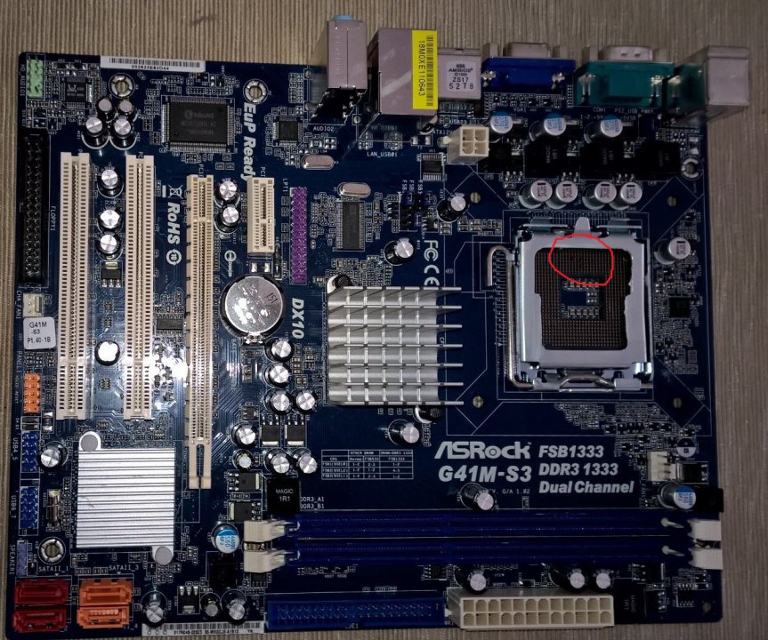 Az alaplapot újonnan vásároltam (AQUA). Sajnos szerelés közben a processzor megsértett 2 lábat a foglalatban ( :( ), melyek enyhén meghajoltak (lásd. csatolt kép), de egyéb problémája nincs.