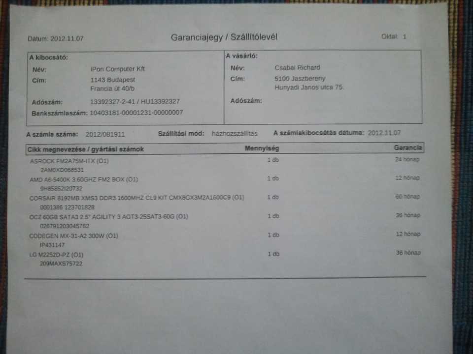 Hdd 500Gb sata2 Seagate 100/20 de őt csak azért h legyen benne valami, meg kipróbálható legyen a masina