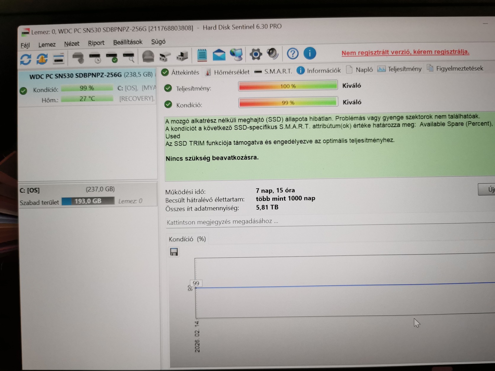 Háttértár mérete 256GB SSD