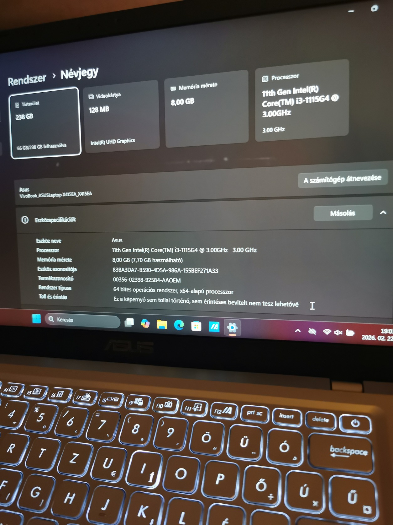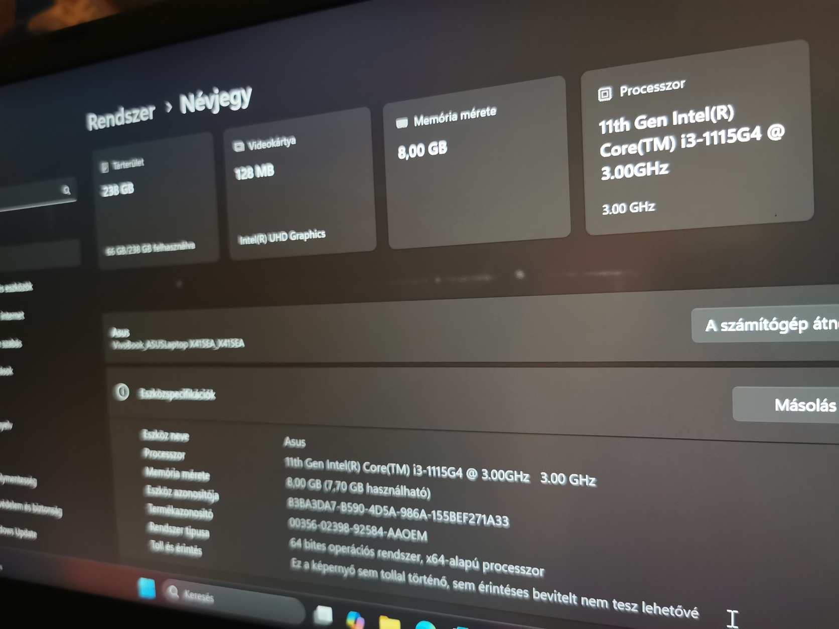 Asus 14" FHD -i3 11 th Gen.-8/256 GB-Áresés