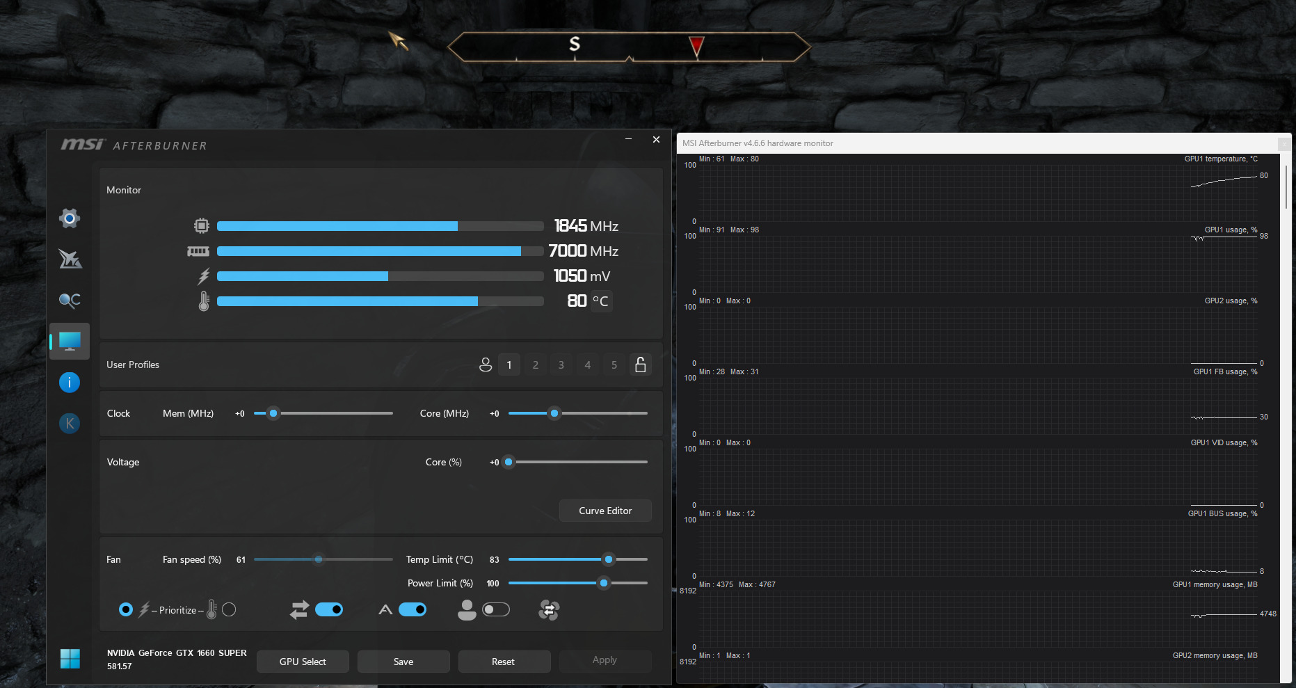A doboza is jár hozzá. A Furmarkkal megizzasztottam, 10 perc teljes teszt, illetve visszaraktam a gépbe és pár játékkal kipróbáltam. A MSI afterburner képet az Oblivion remastered futása alatt csináltam. Így tesztelten tudom adni. A garancia lejárt rá tavaly áprilisban.