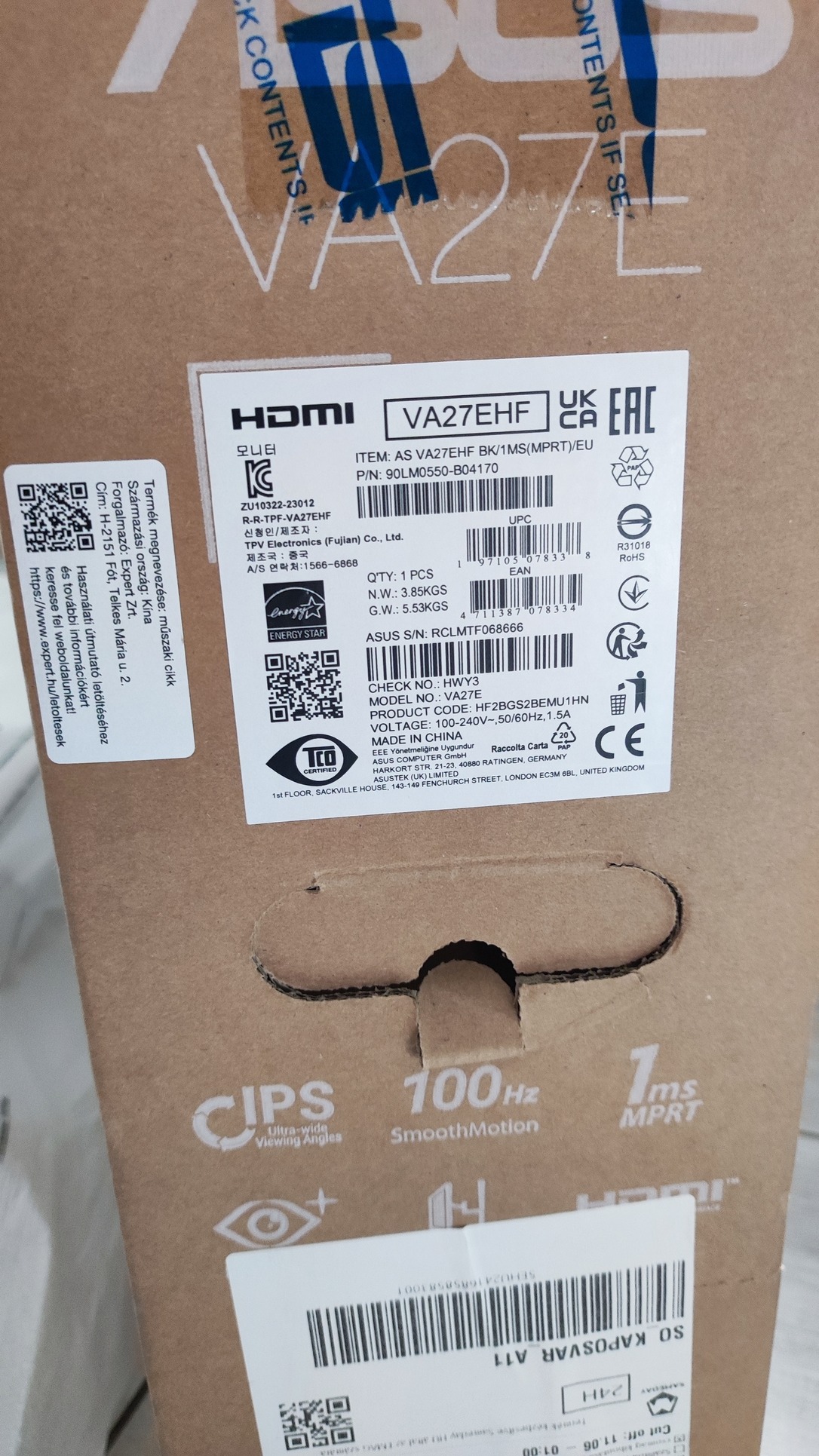 Asus 27" monitor 100hz