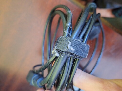 Tápegység működik, de a kábelén a kettős szigetelés sérült így körbe van tekerve szigetelő szalaggal.