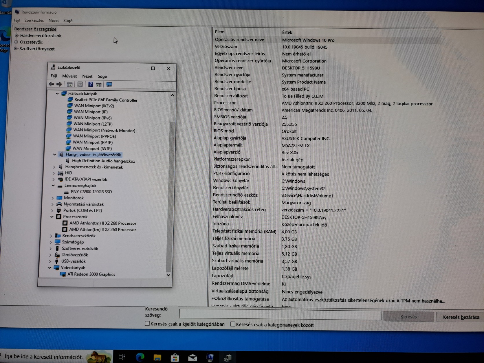 ASUS alaplap CPU, SSD, RAM