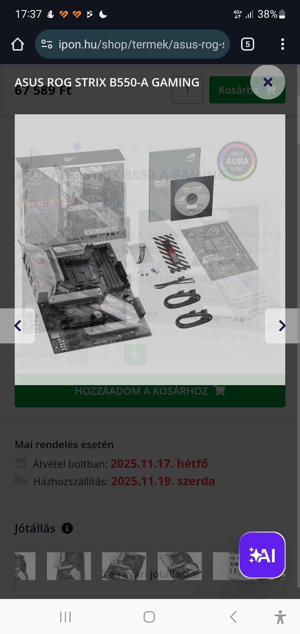 Asus B550-A gaming eladó 3 év garancia..