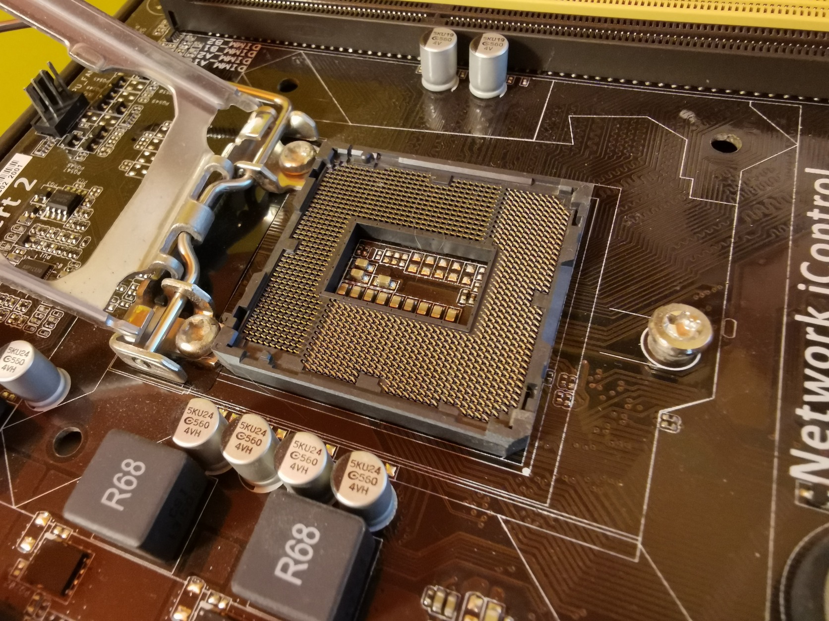 Mind a négy memória foglalat jó. Processzor foglalat nem sérült, a tűk nem görbültek.