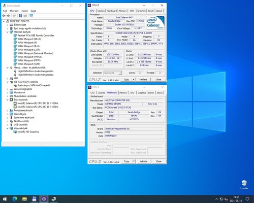 - integrált Intel Celeron 847 mobil processzor (1,1GHz, 2 mag + HD Graphics, alacsony fogyasztás TDP: 17W)