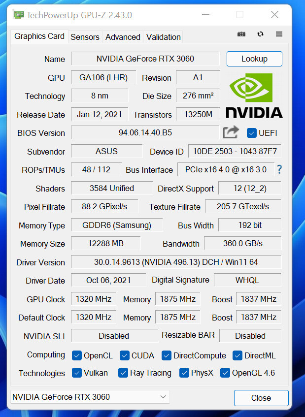Asus Dual RTX3060 v1 noLHR - Csere is
