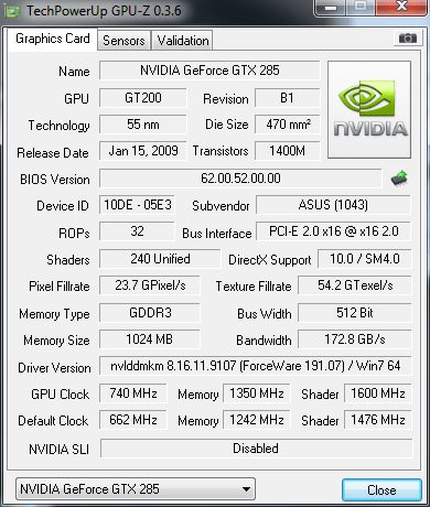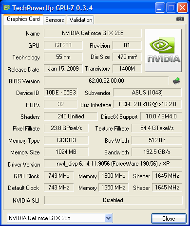 Asus ENGTX285/HTDI/1GD3 MATRIX