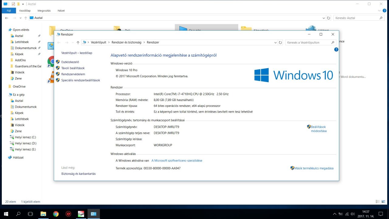 Jelenleg beaktivalt windows 10pro fut rajta.