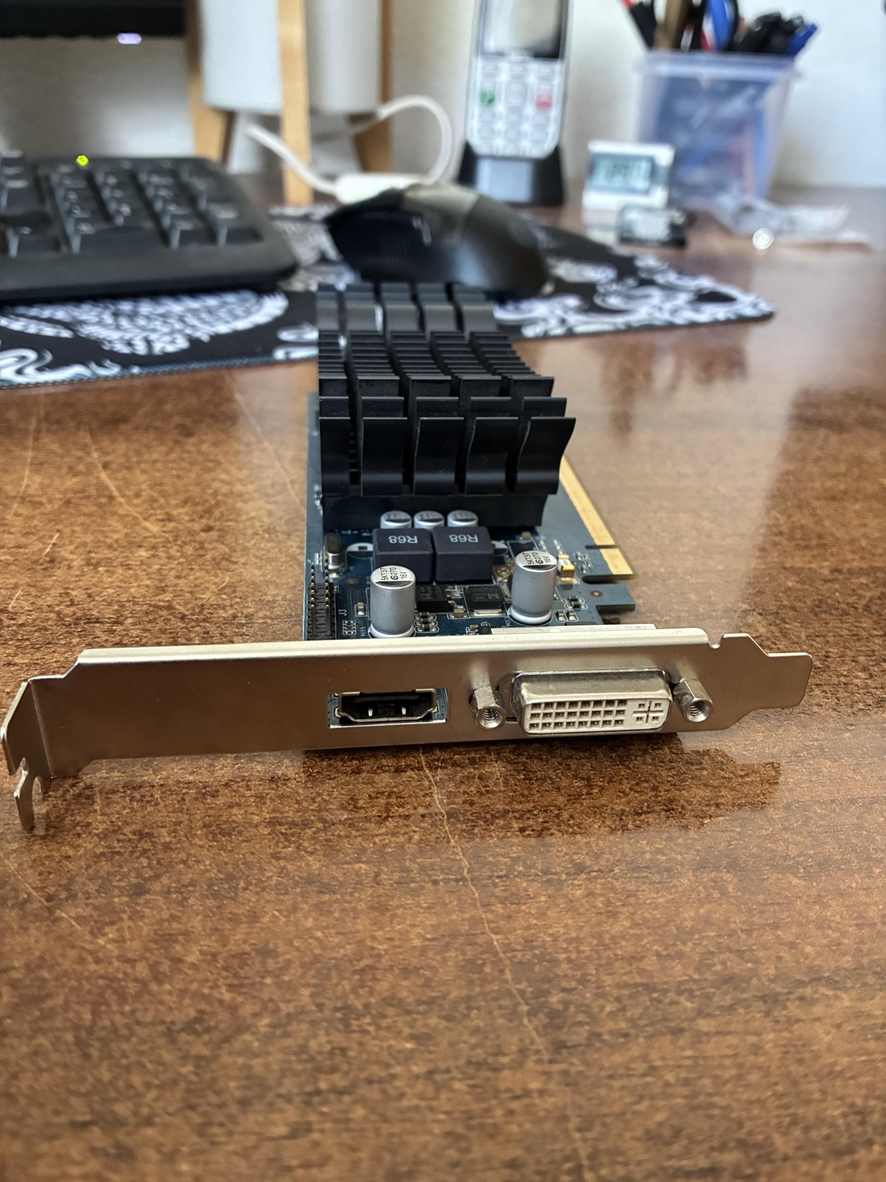 A kártya low profile kivitel, de magas profilú hátlap van rajta.