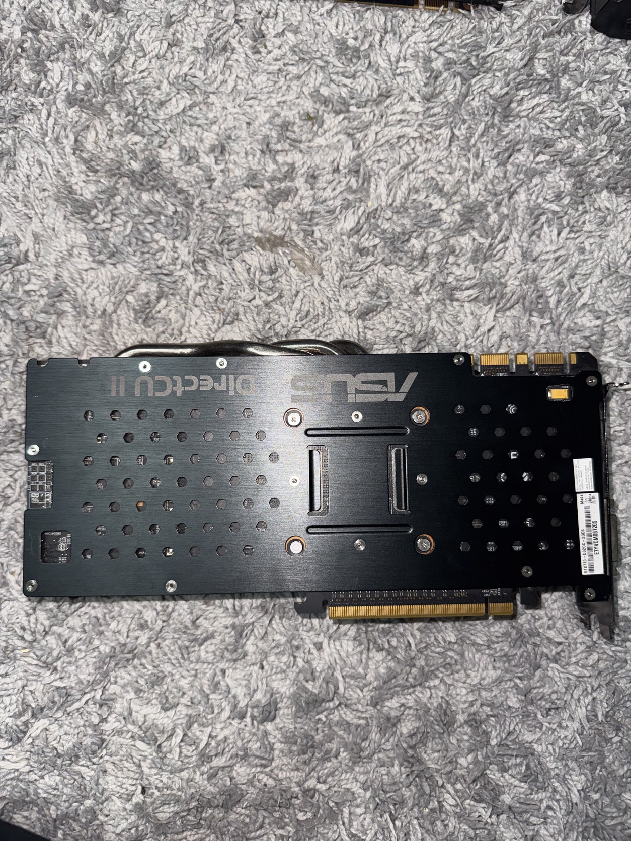 Eladó a képeken látható, masszív felépítésű ASUS GTX 770 videókártya. Ez nem a belépő szint, hanem egy komolyabb teljesítményű darab, DirectCU II hűtéssel és hátlapi merevítéssel (backplate).