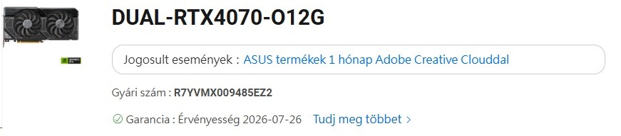 ASUS GeForce RTX 4070 Dual OC 12GB Garancia 26.07