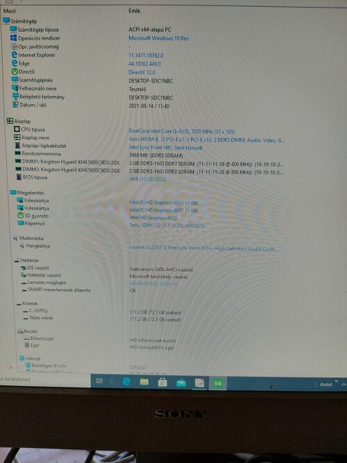 ASUS H81M-E (Igény esetén I3-4170 3,7 Ghz-s)