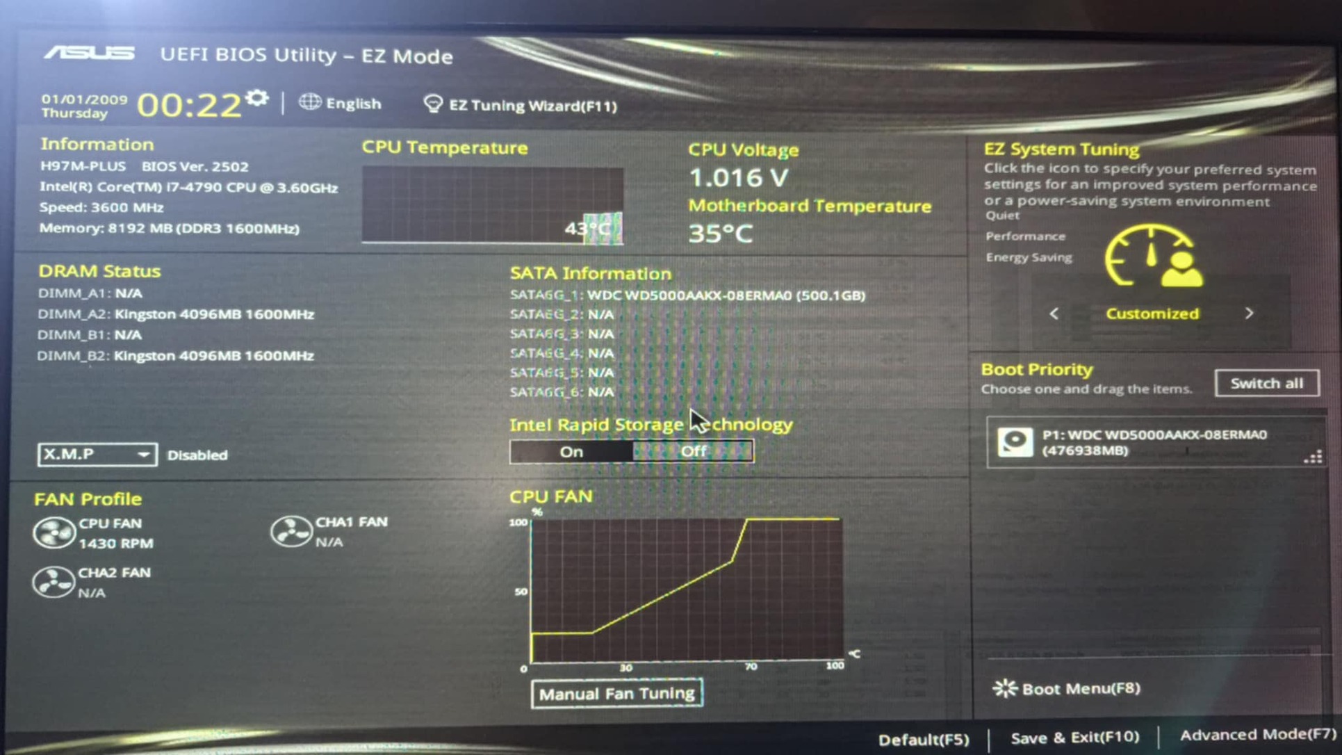 +Ram: 8 Gb 1600 Mhz (2x4Gb)