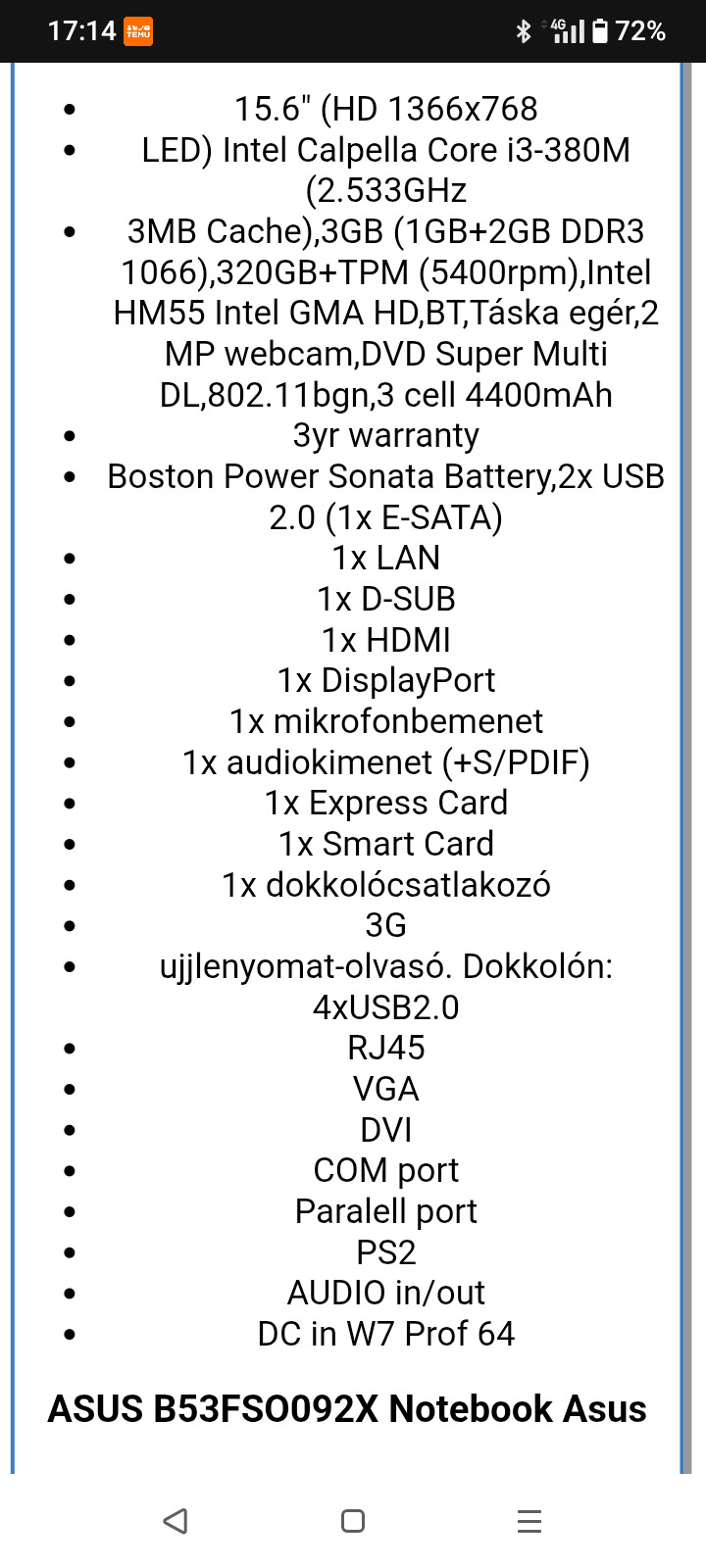 Eladó sorba került egy Asus laptop kihasználtság miatt.Tökéletesen működik.1TB tárhely van benne és 4 gb ram.a többi a képeken leírva.megtekinthető Budapesten csak személyesen