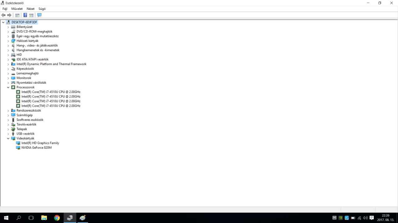 Frissen telepített Windows 10-es rendszer.