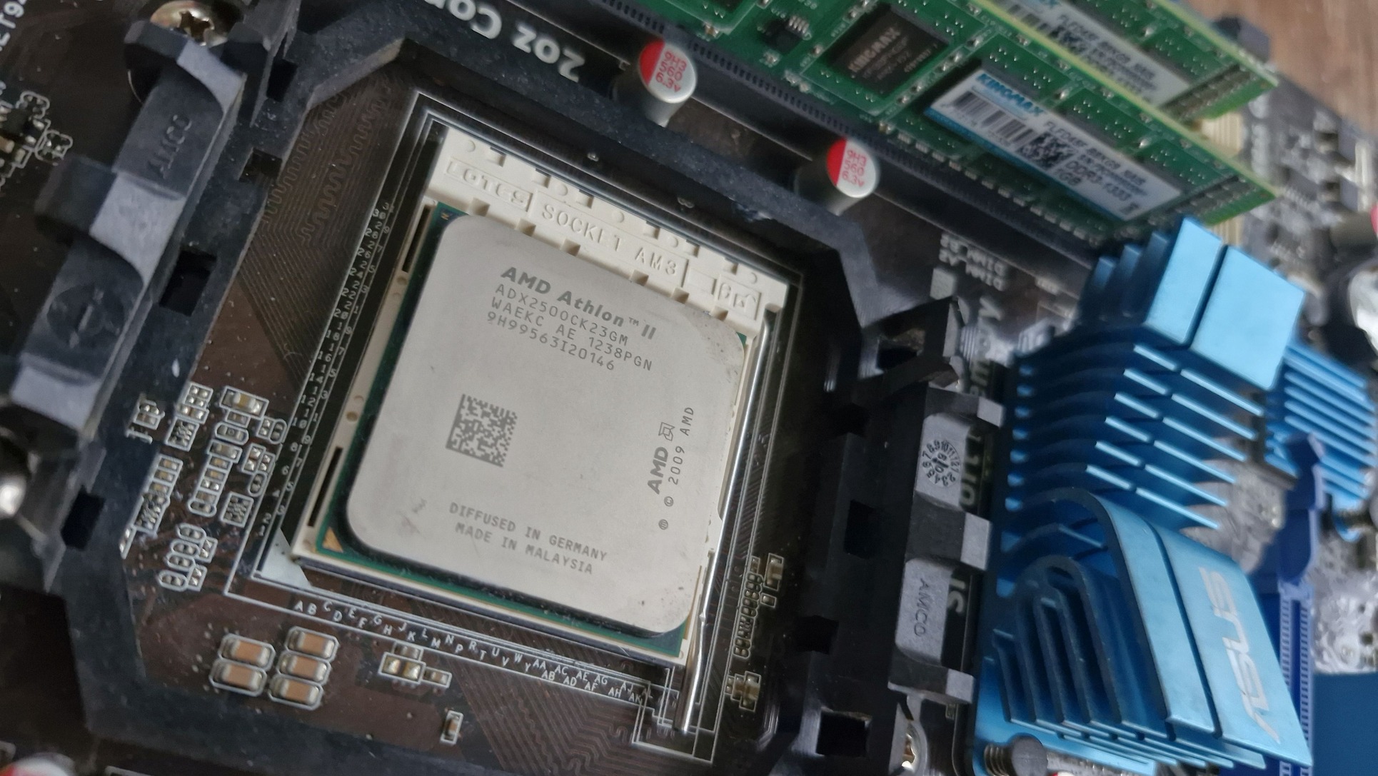 A képeken látható CPU és RAM nem járnak az alaplaphoz. Egy Athlon X2 250 CPU-val és 2x1 GB rammal 5.000 Ft az ára (a hűtő elkelt).
