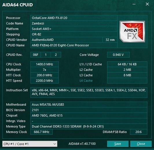 Processzor: AMD FX-8120 8-Core 3.1GHz AM3+