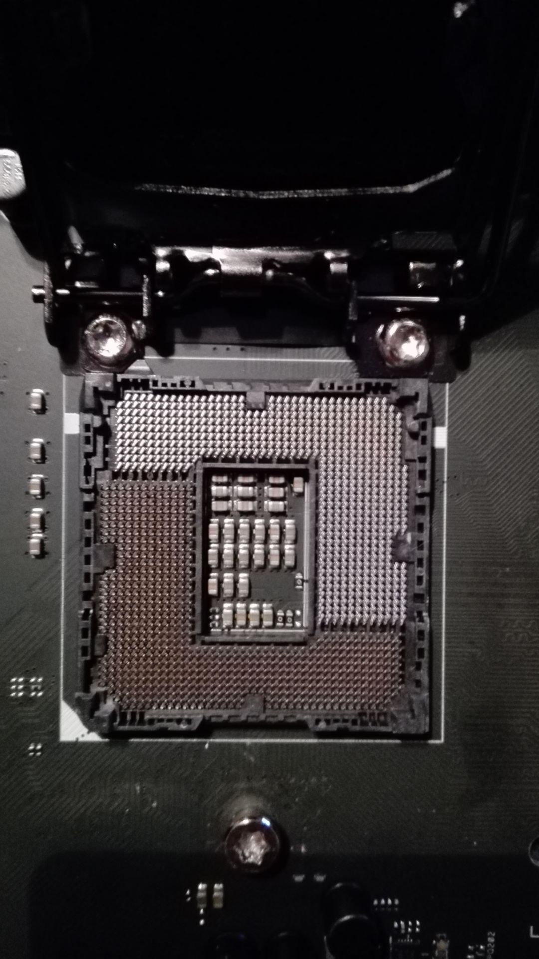 CPU lábak rendben vannak? Mintha lenne egy-két kósza lábacska. Közelebbi fotót tudnál csinálni?