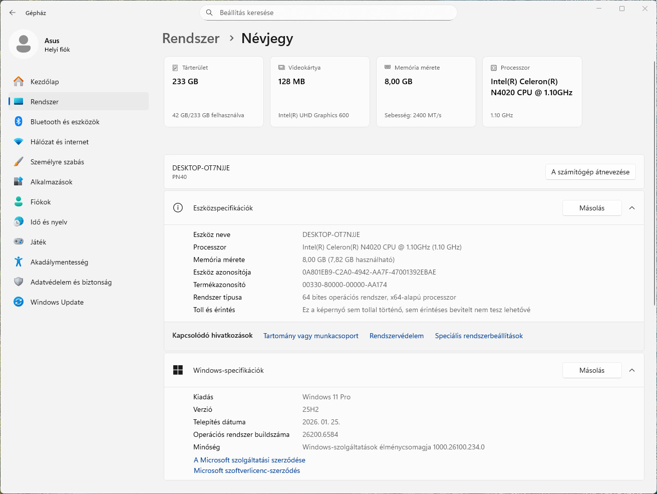 CPU: Intel Celeron N4020