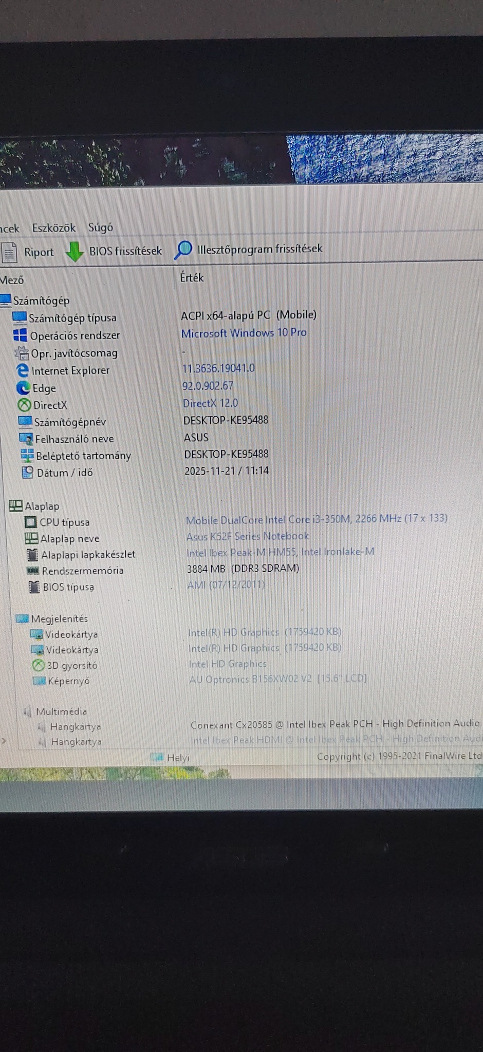 Videkártya : 1.5 Gb intel HD