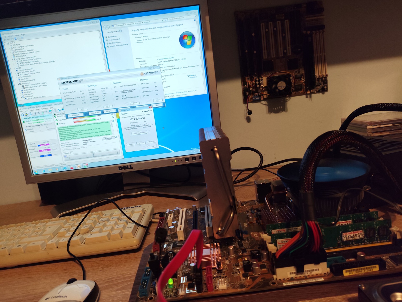 Frissen telepített Win7 alatt tesztelt, saját dobozával nagyon szép állapotban. Leírással, driver CDvel minden ami a képen van hozzá. 3.0 Ghz Intel Pentium procival (SL7PU) 3 nap próbagaranciával.