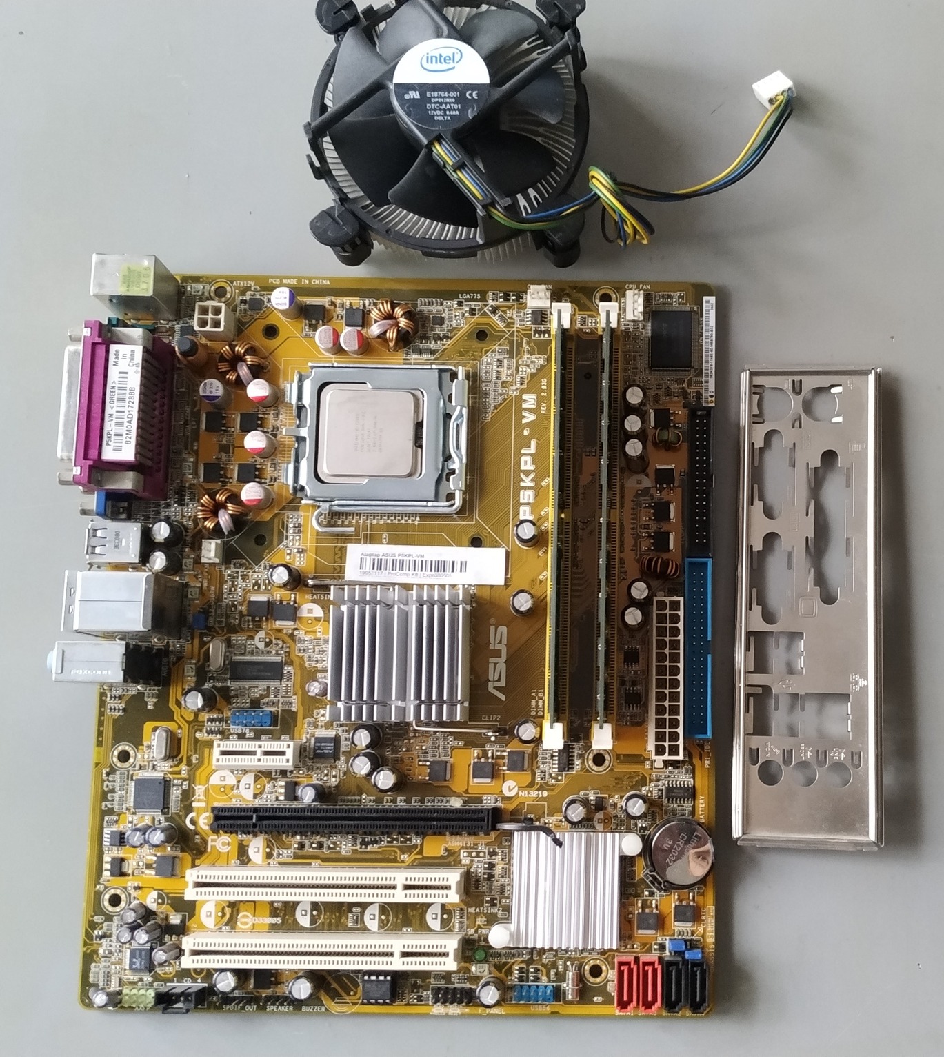 Eladó a fent említett alaplap és IO shield benne egy Pentium Dual-Core E2180-al és annak gyári hűtőjével.
