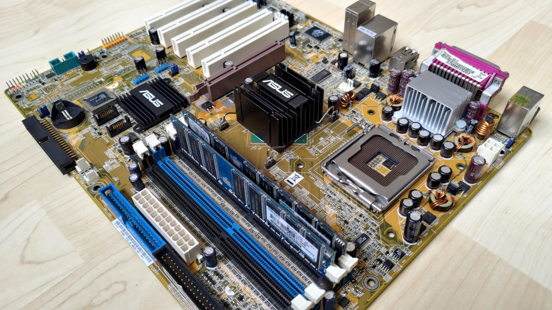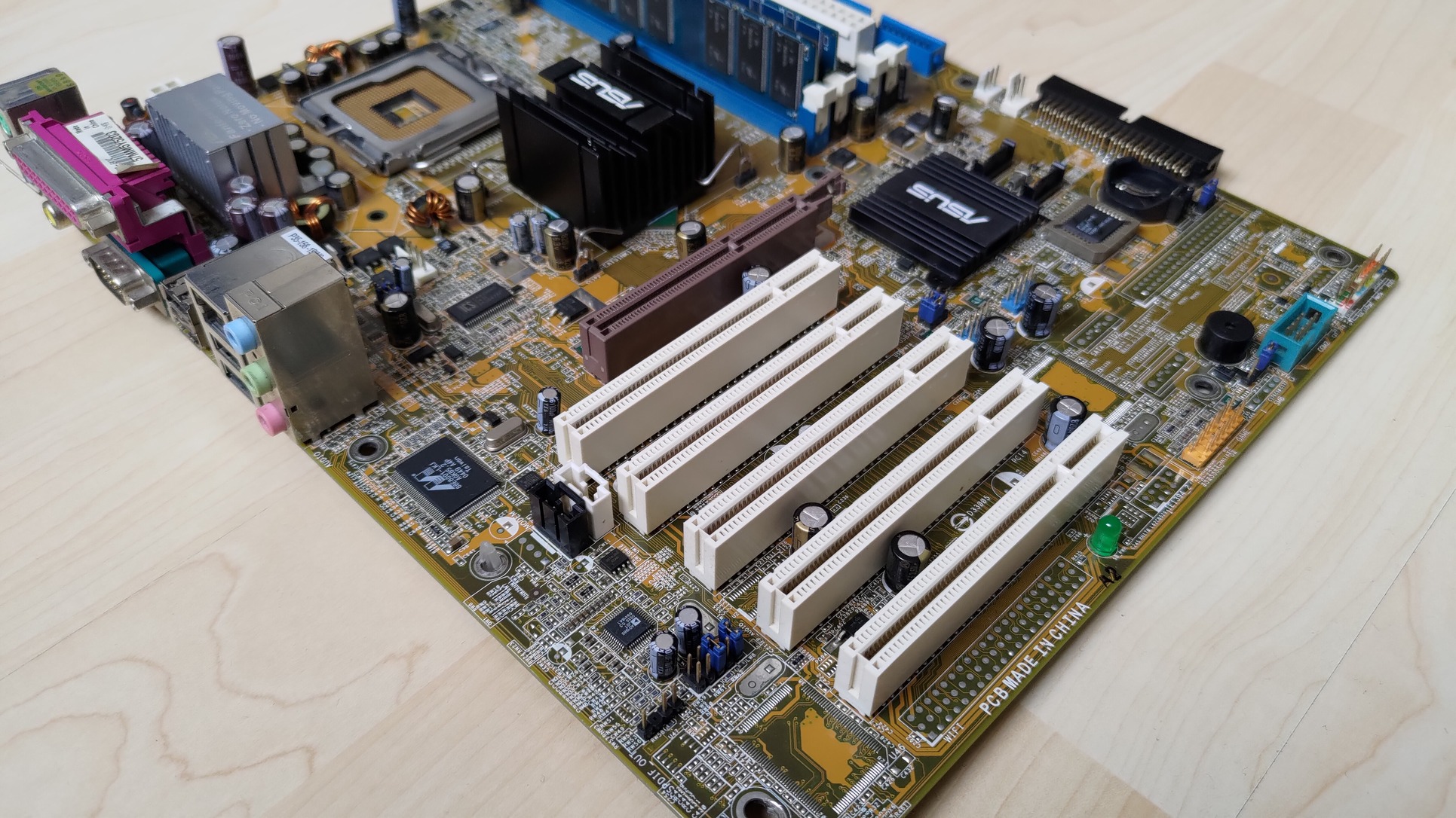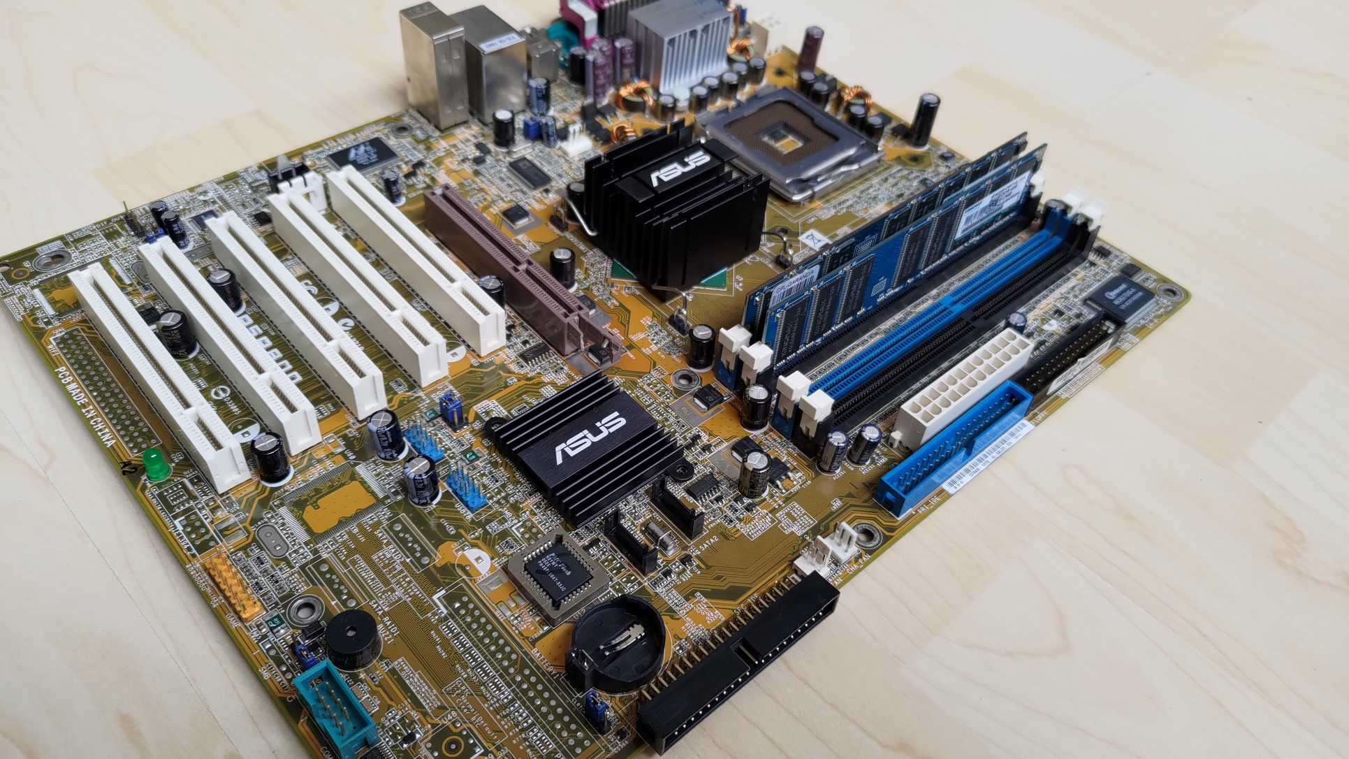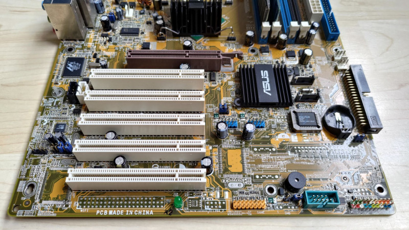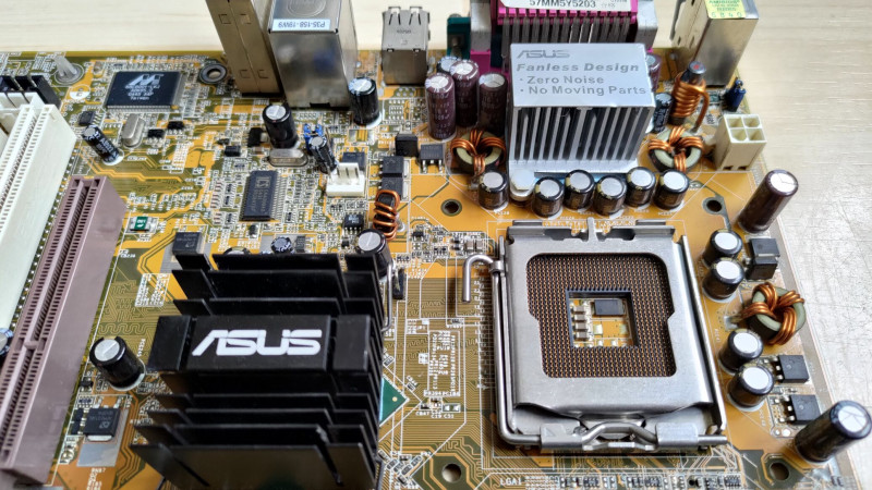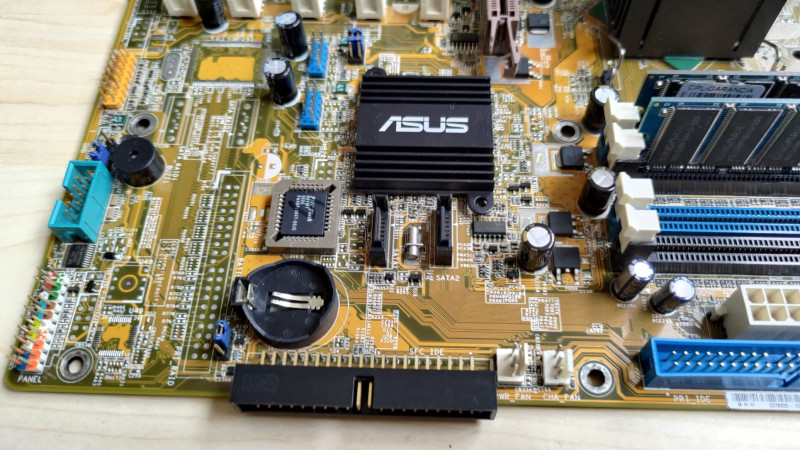 Kapott néhány "upgrade-et" is: beforrasztottam egy alaplapi csipogót és egy 3 pin-es venti csatlakozót, és a déli hídra ragasztottam egy Asus logós bordát (hővezető ragasztóval, nem levehető). A BIOS moddolva van, hogy a Cedar Mill magos procikat is támogassa, én egy P4 641-es (SL9KF) procival használtam.