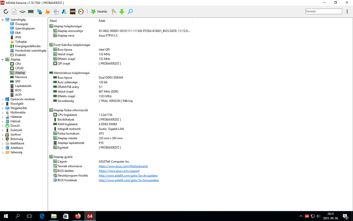 ASUS P7P55LX alaplap + 4mag/8szál-as i7 tudású processzor